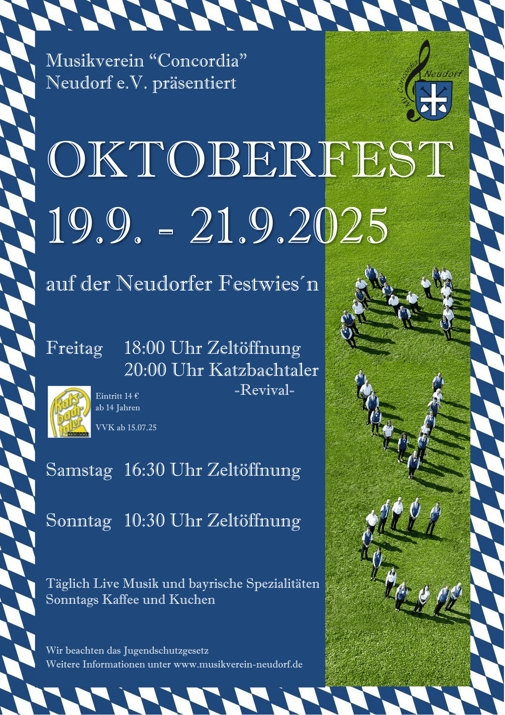 Von Fr. 19.09. – So. 21.09. findet endlich wieder unser Oktoberfest statt. Ein Highlight des Festwochenendes ist sicherlich der Auftritt der Band Katzbachtaler am Freitag